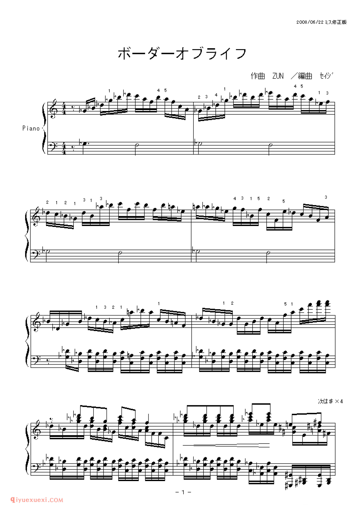 [2ch][lunatic][8]_ボーダーオブライフ_东方(project)钢琴谱
