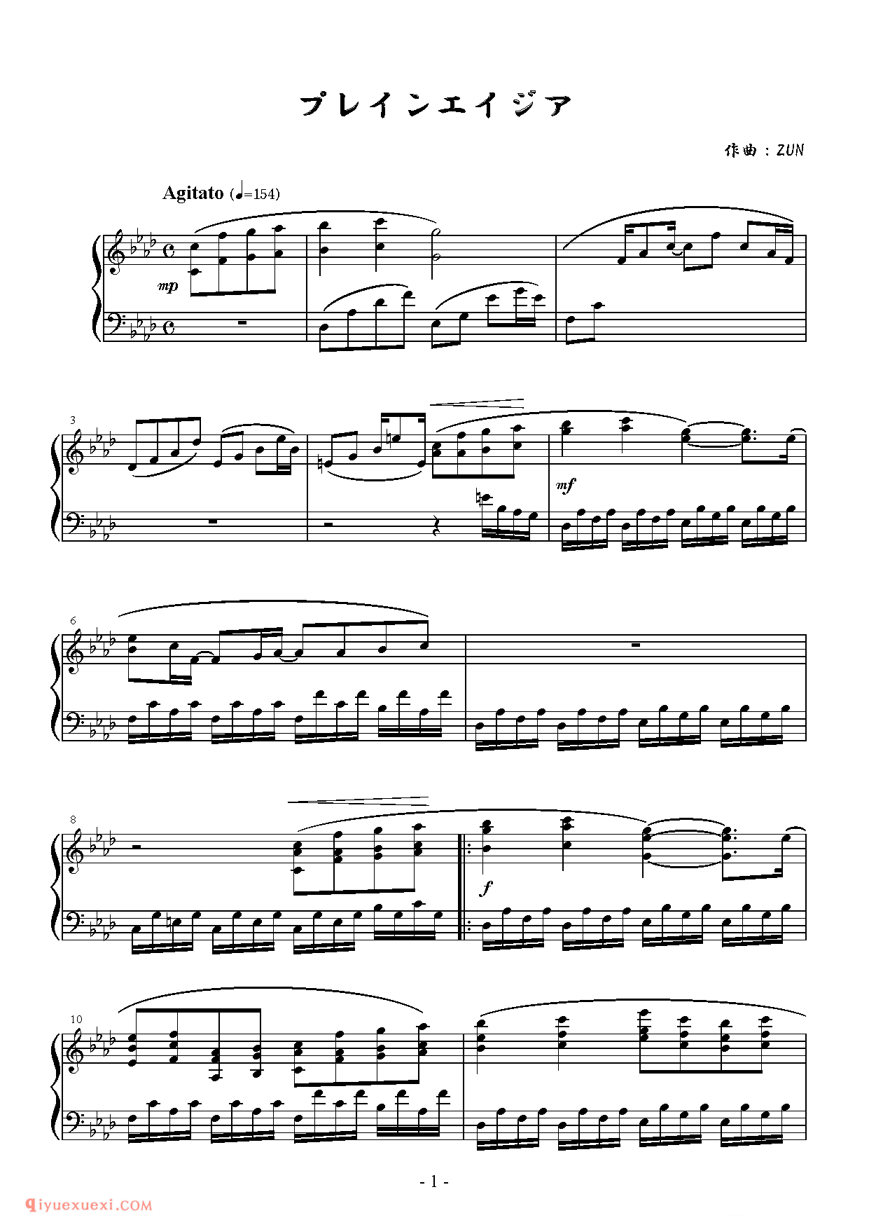 [2ch][lunatic][6]_プレインエイジア_东方(project)钢琴谱