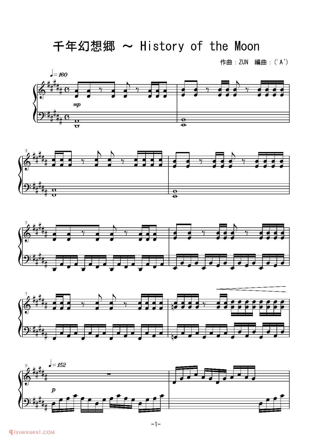 [2ch][lunatic][9]改订版]_千年幻想郷~History of the Moon_东方(project)钢琴谱