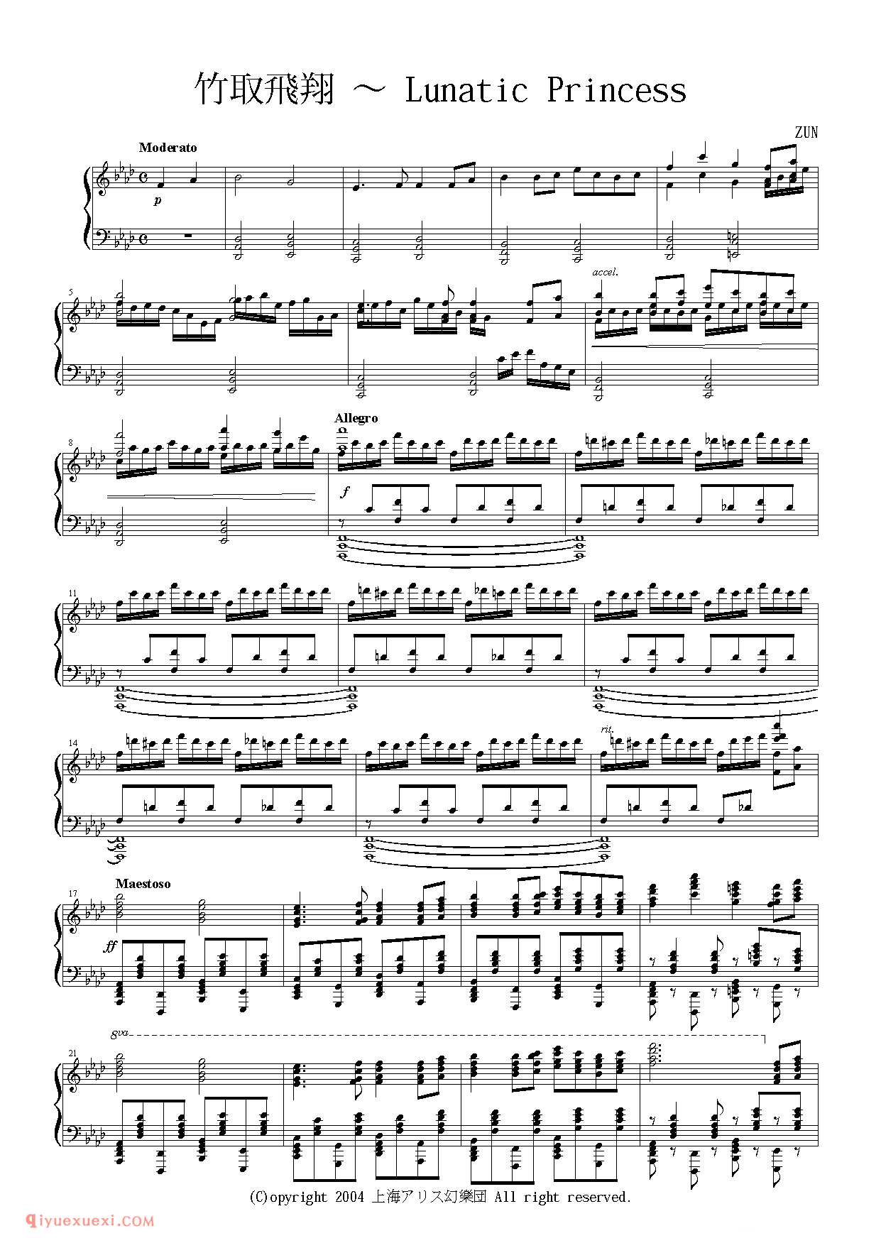 [2ch][lunatic][5](強化版)_竹取飛翔~Lunatic Princess_东方(project)钢琴谱