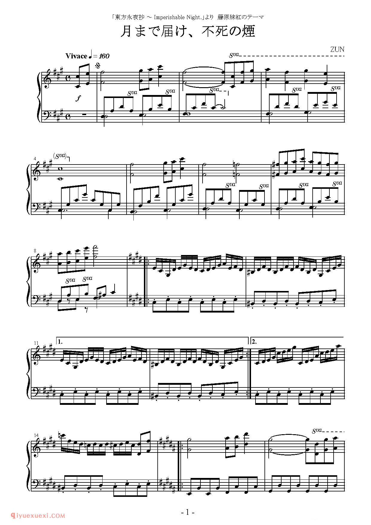[东方幻音奏][lunatic][4]_月まで届け、不死の煙_东方(project)钢琴谱高清电子版乐谱歌词图片是器乐学习网于2021年12月07日 21:10:28更新分享的钢琴曲谱;资源收录于钢琴曲谱栏目中;器乐学习网免费分享[东方幻音奏][lunatic][4]_月まで届け、不死の煙_东方(project)钢琴谱简谱与五线谱歌谱图片,欢迎在线免费下载;器乐学习网无需注册会员,直接免费下载各类乐器学习资源及乐谱。