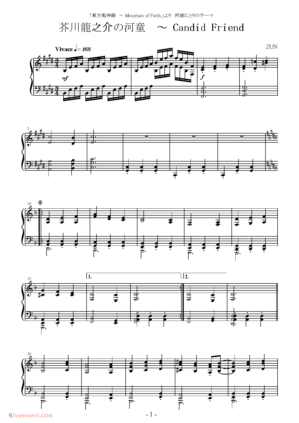 [东方幻音奏][normal][4]_芥川龍之介の河童~Candid Friend_東方風神録高清电子版乐谱歌词图片是器乐学习网于2021年12月07日 22:28:33更新分享的钢琴曲谱;资源收录于钢琴曲谱栏目中;器乐学习网免费分享[东方幻音奏][normal][4]_芥川龍之介の河童~Candid Friend_東方風神録简谱与五线谱歌谱图片,欢迎在线免费下载;器乐学习网无需注册会员,直接免费下载各类乐器学习资源及乐谱。