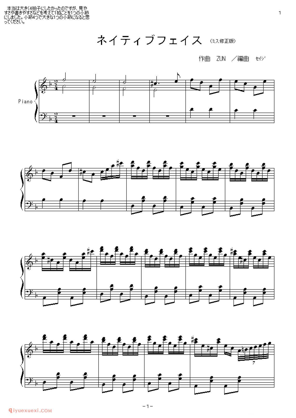 [2ch][lunatic][13]ミス修正版_ネイティブフェイス_東方風神録高清电子版乐谱歌词图片是器乐学习网于2021年12月07日 23:39:42更新分享的钢琴曲谱;资源收录于钢琴曲谱栏目中;器乐学习网免费分享[2ch][lunatic][13]ミス修正版_ネイティブフェイス_東方風神録简谱与五线谱歌谱图片,欢迎在线免费下载;器乐学习网无需注册会员,直接免费下载各类乐器学习资源及乐谱。