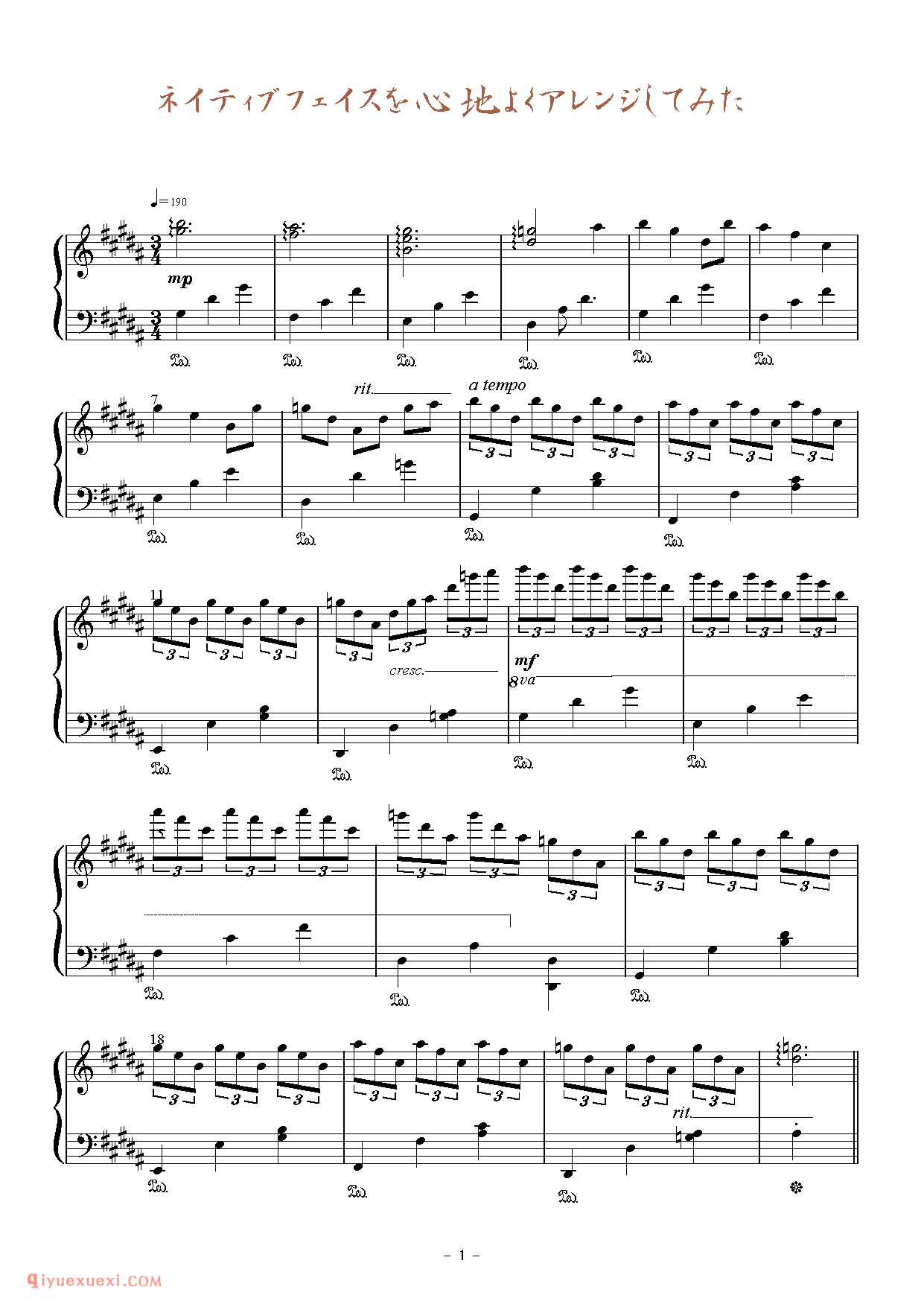 佚名 网络[焦げた幻想郷][normal][5]ネイティブフェイスを心地よくアレンジしてみた_ネイティブフェイス_東方風神録高清电子版乐谱歌词图片是器乐学习网于2021年12月07日 23:51:29更新分享的钢琴曲谱;资源收录于钢琴曲谱栏目中;器乐学习网免费分享[焦げた幻想郷][normal][5]ネイティブフェイスを心地よくアレンジしてみた_ネイティブフェイス_東方風神録简谱与五线谱歌谱图片,欢迎在线免费下载;器乐学习网无需注册会员,直接免费下载各类乐器学习资源及乐谱。