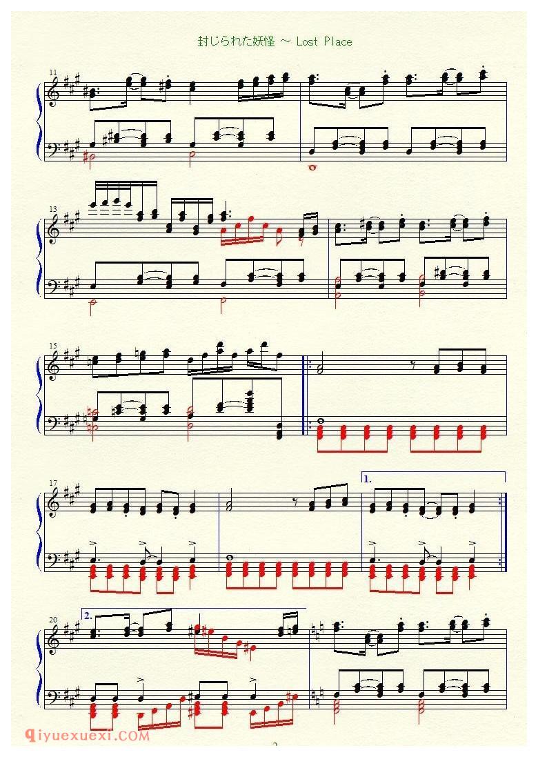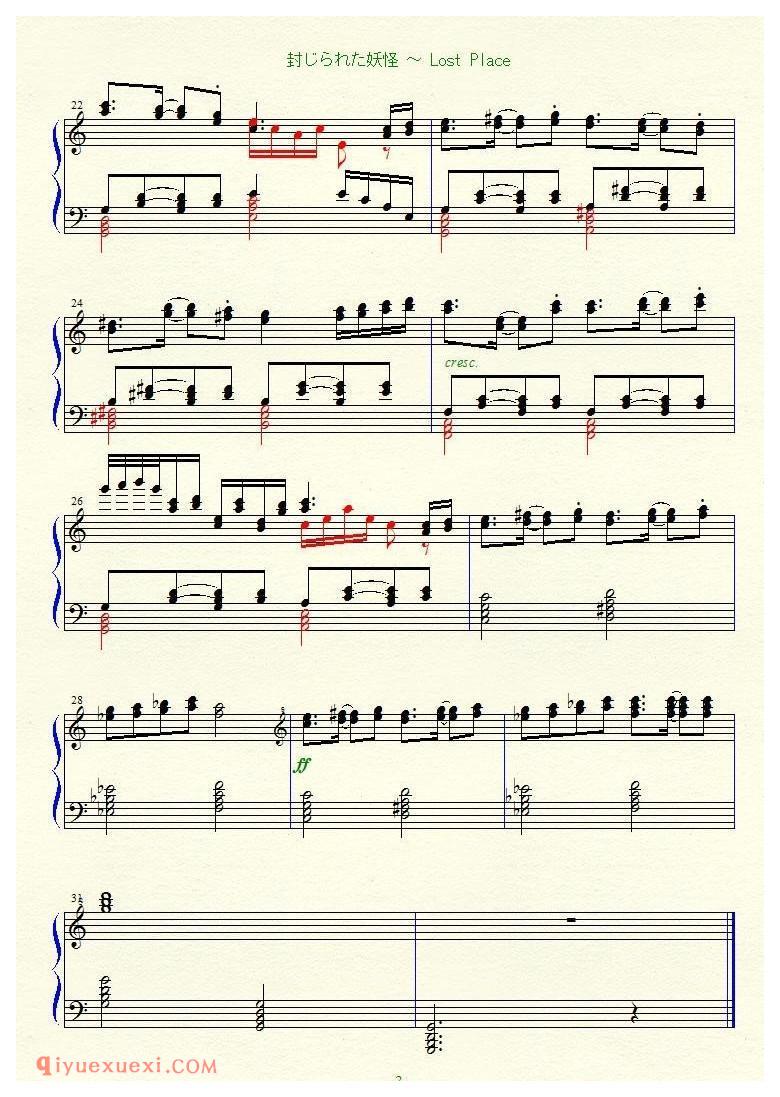 佚名 网络[2ch][lunatic][3]_封じられた妖怪~Lost Place_東方地霊殿高清电子版乐谱歌词图片是器乐学习网于2021年12月08日 08:47:14更新分享的钢琴曲谱;资源收录于钢琴曲谱栏目中;器乐学习网免费分享[2ch][lunatic][3]_封じられた妖怪~Lost Place_東方地霊殿简谱与五线谱歌谱图片,欢迎在线免费下载;器乐学习网无需注册会员,直接免费下载各类乐器学习资源及乐谱。