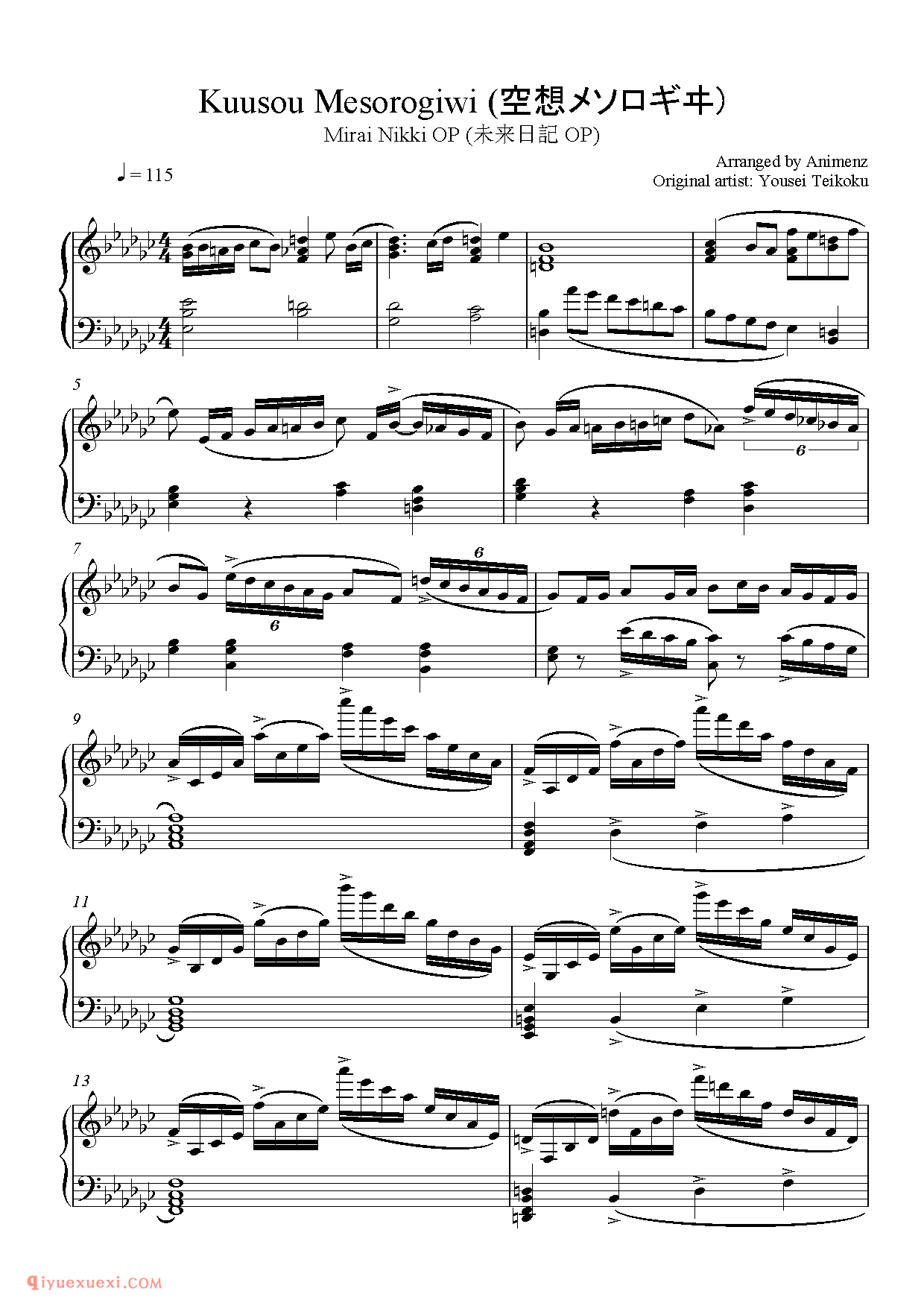 未来日记op1 空想神话_郭迈克(Animenz)钢琴谱