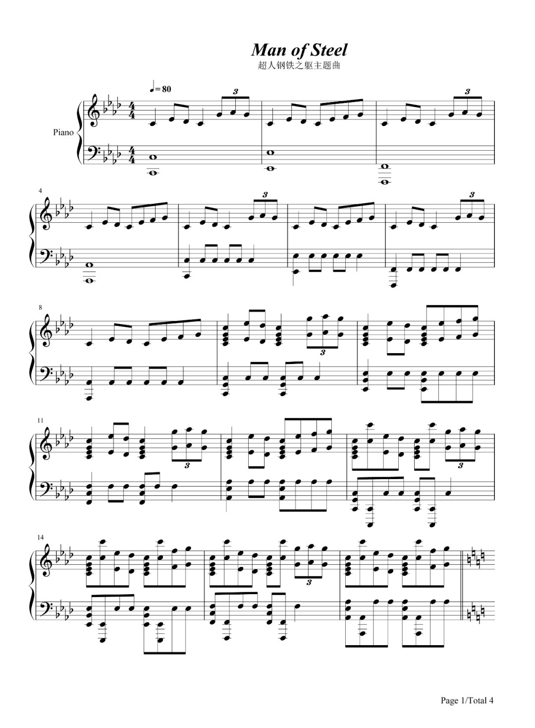 钢琴谱 Man of Steel-超人钢铁之躯主题曲 火车快跑