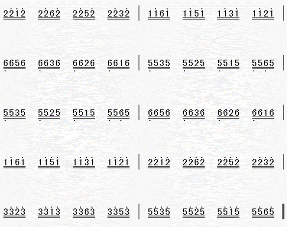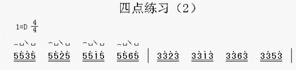 4. 每天按节拍器节奏练习“四点练习”第二条,左右手各三遍。