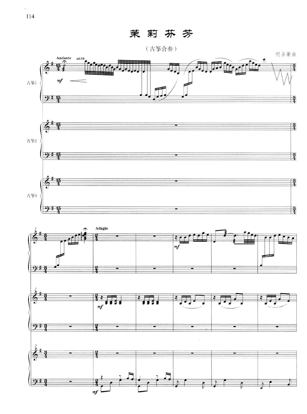 茉莉芬芳(古筝合奏)何占豪曲高清电子版乐谱歌词图片是器乐学习网于2023年04月26日 11:00:43更新分享的古筝曲谱;资源收录于古筝曲谱栏目中;器乐学习网免费分享茉莉芬芳(古筝合奏)何占豪曲简谱与五线谱歌谱图片,欢迎在线免费下载;器乐学习网无需注册会员,直接免费下载各类乐器学习资源及乐谱。