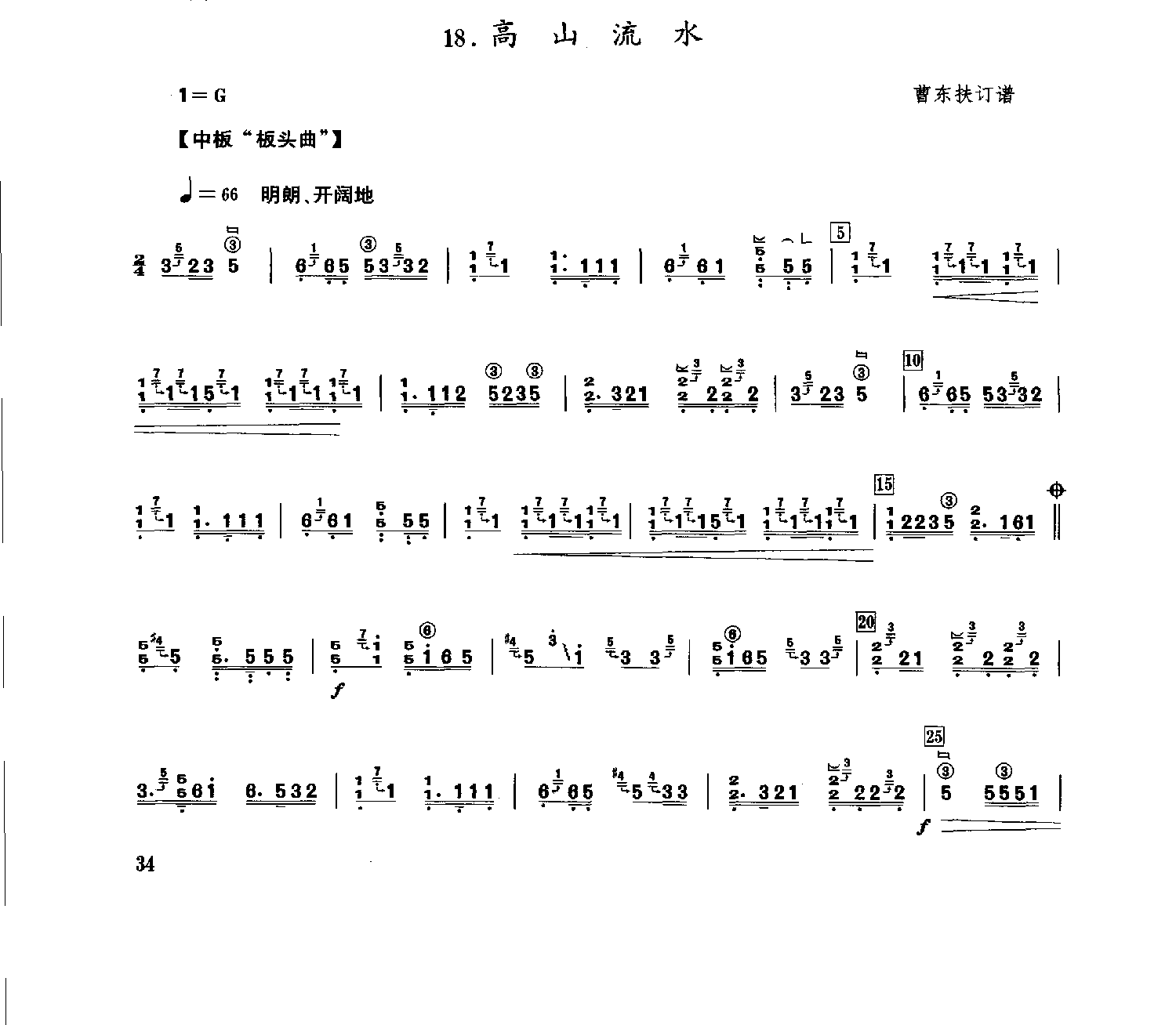 曹东扶 头曲《高山流水》河南筝派代表曲谱
