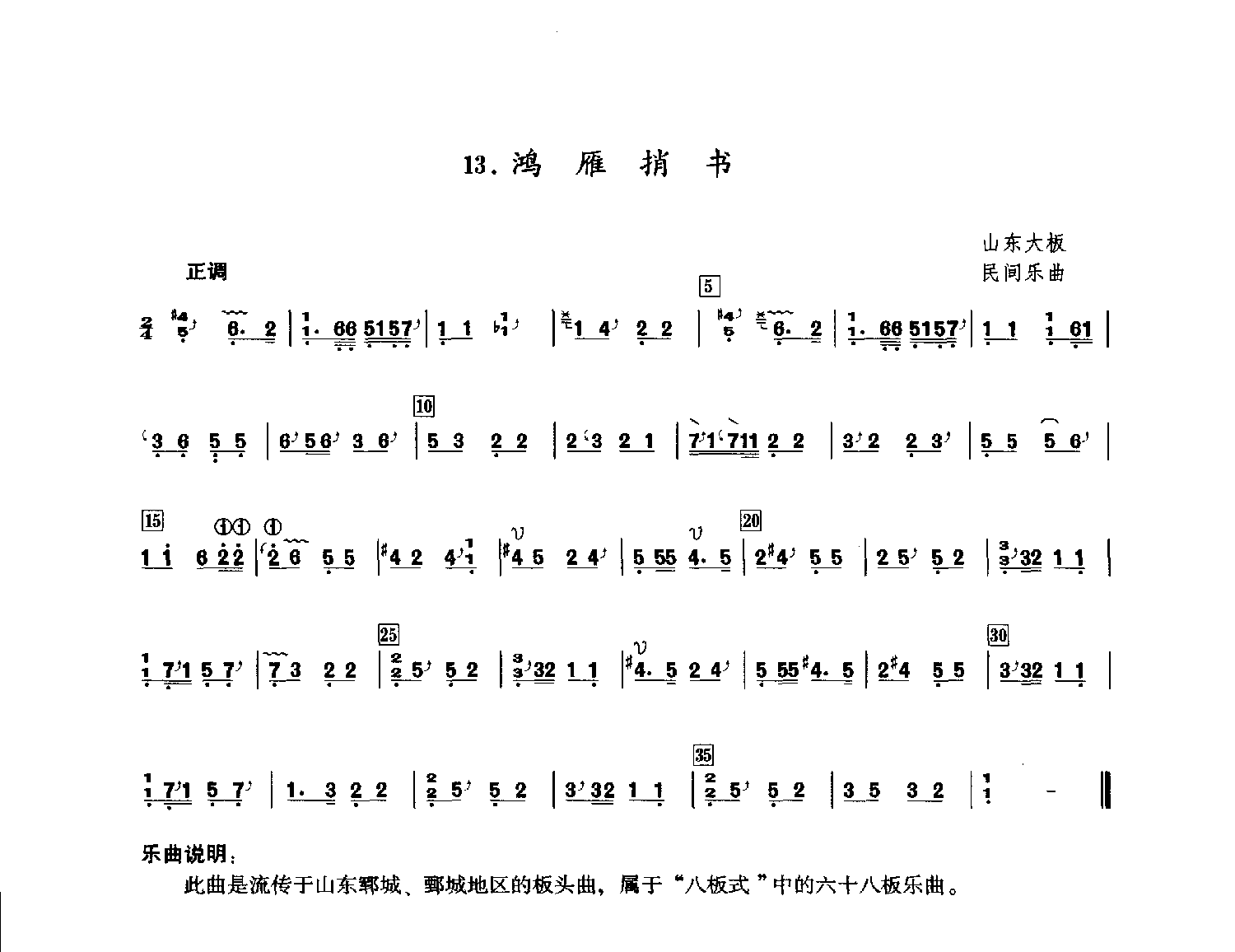 此曲是流传于山东郓城、鄄城地区的板头曲,属于“八板式”中的六十八板乐曲。