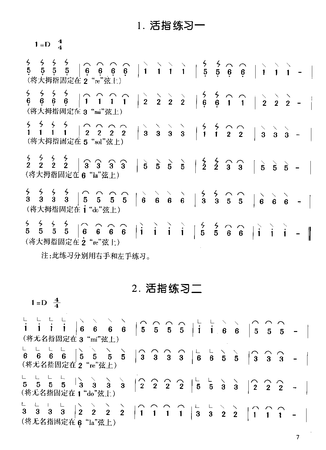 古筝拨弦练习(贴弦练习)活指练习乐谱