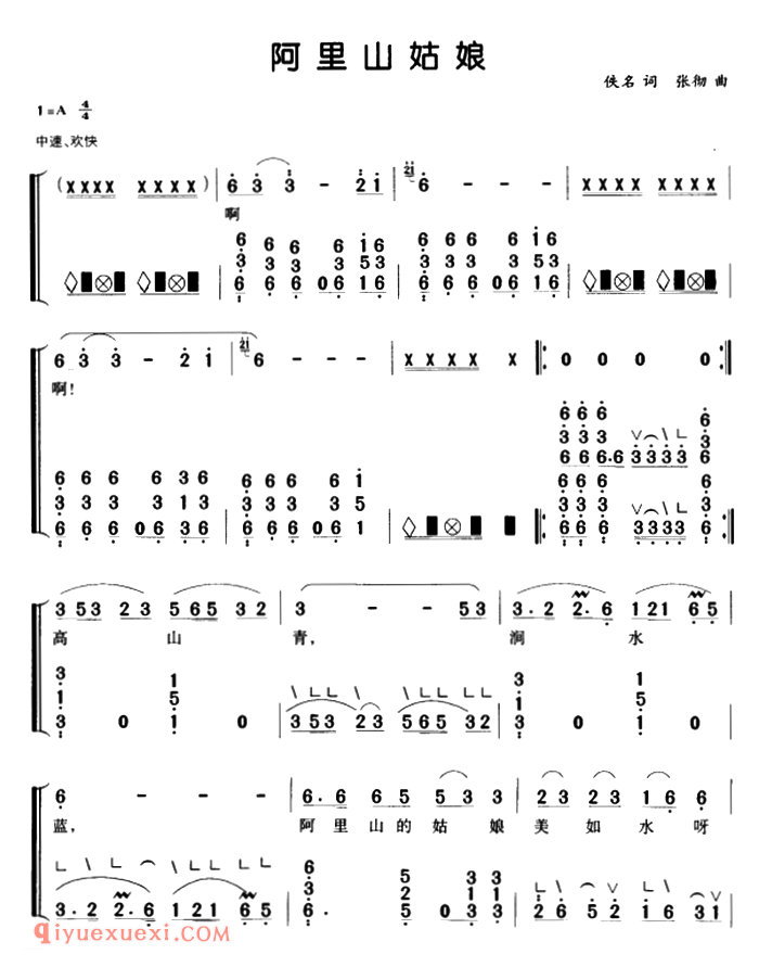 古筝弹唱谱 阿里山姑娘高清电子版乐谱歌词图片是器乐学习网于2022年10月21日 10:04:38更新分享的古筝曲谱;资源收录于古筝曲谱栏目中;器乐学习网免费分享古筝弹唱谱 阿里山姑娘简谱与五线谱歌谱图片,欢迎在线免费下载;器乐学习网无需注册会员,直接免费下载各类乐器学习资源及乐谱。