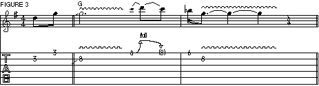 但是如果你就按照谱子上写的演奏,你会发现听起来有些不对。现在对比一下,听听我B.B.King是如何处理的( FIGURE 3)