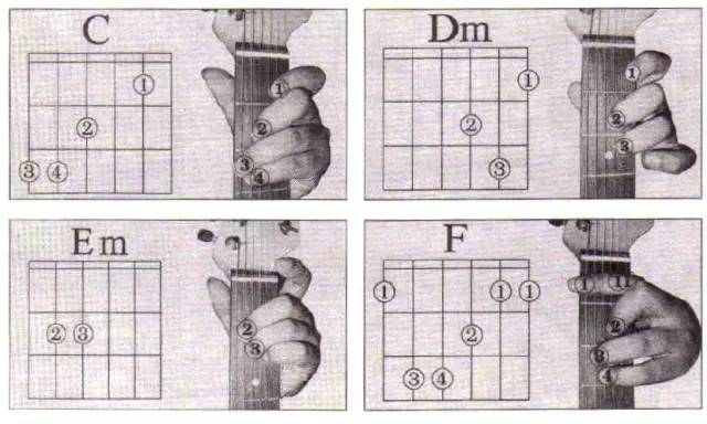 依葫芦画瓢,手指按在对应的弦和品上,具体操作请看图: