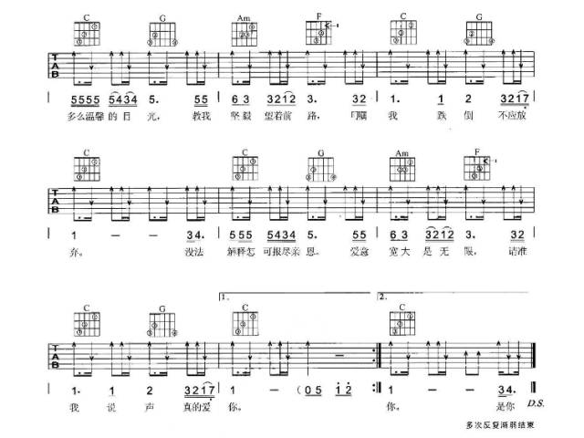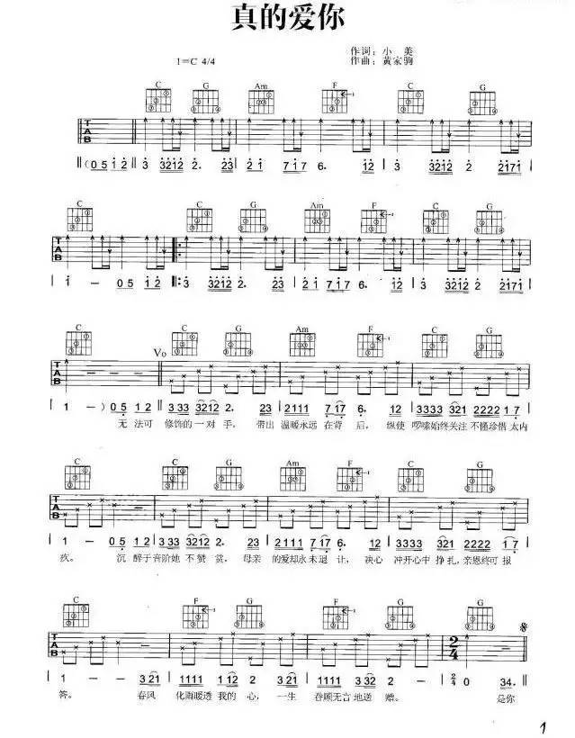 我们常看到的谱是这样的 : ( 以《真的爱你》为例)