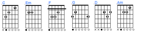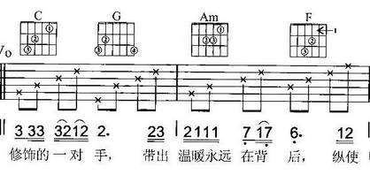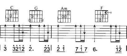 (2).和弦切换的时候,能不移动的手指尽量不要移动.如C-Am--C这样的练习,在变换的时候,食指始终按在2弦的1品上没有变动,所以只需要移动另外2个指头就可以了,而食指不要松开。这样,有一个基准手指作为参照,其余移动的2个手指也不容易出错.类似的还有Am-D7,C--F大7,G7--Dm等。