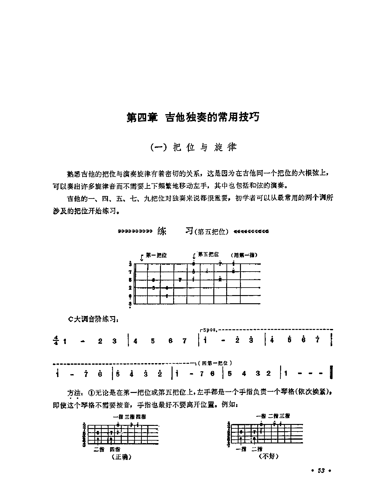 吉他的一、四、五、七、九把位对独奏来说都很重要,初学者可以从最常用的两个调所涉及的把位开始练习。