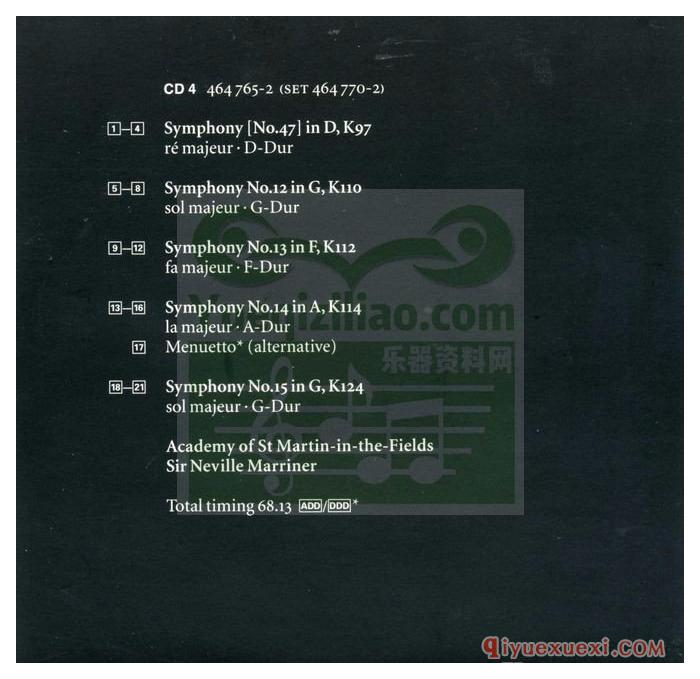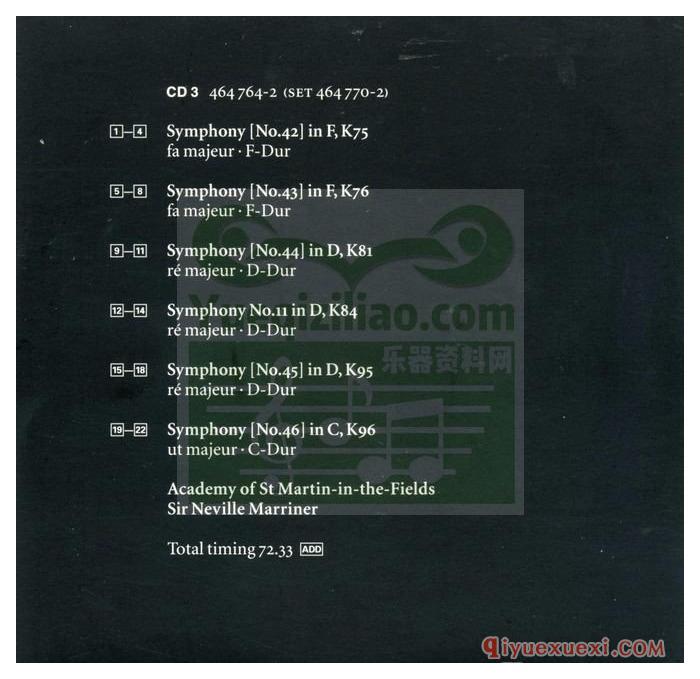 莫扎特 网络飞利浦《莫扎特全集 Complete Mozart Edition》第一盒:交响曲全集(12CD 464 770-2)