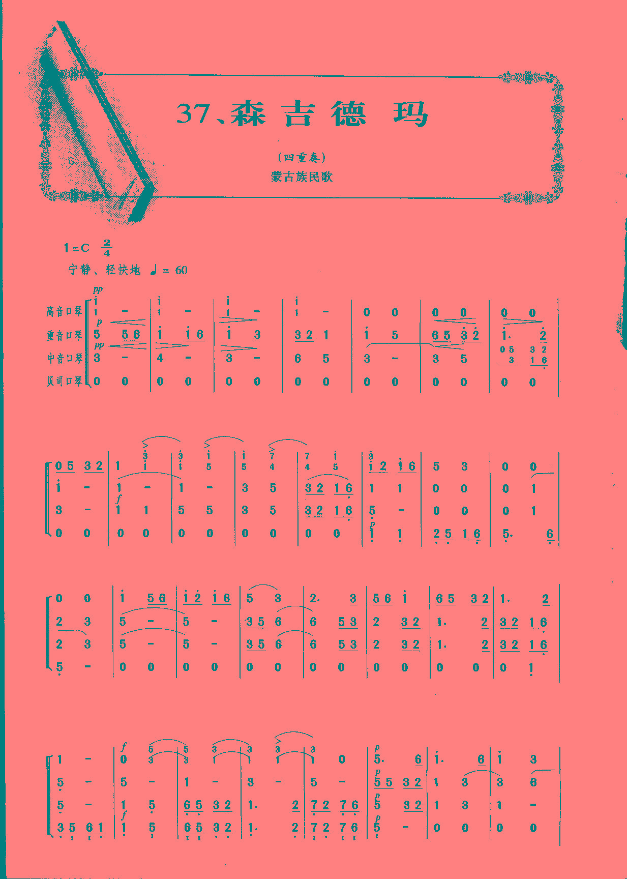 口琴演奏曲精选[森吉德玛(四重奏)]附演奏提示 周张庆编