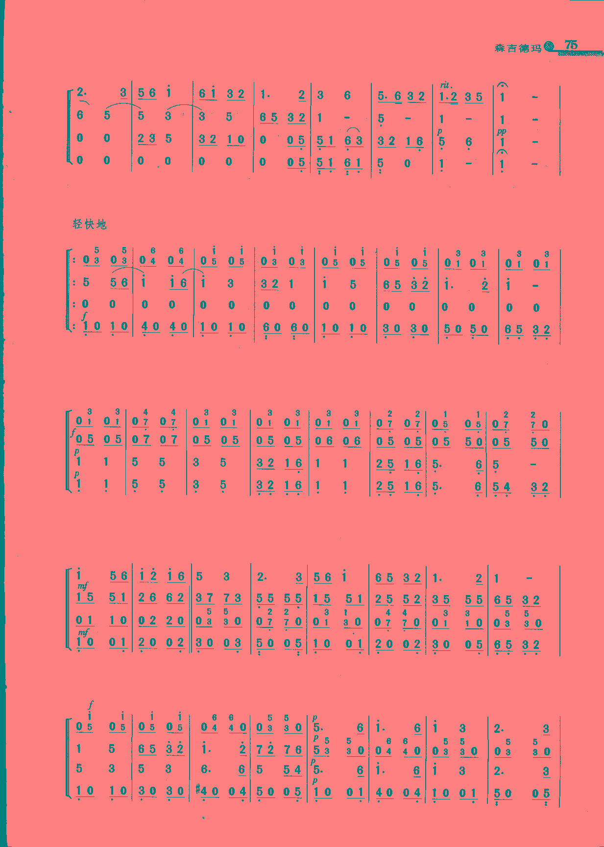 口琴演奏曲精选[森吉德玛(四重奏)]附演奏提示 周张庆编高清电子版乐谱歌词图片是器乐学习网于2024年12月19日 09:28:15更新分享的口琴曲谱;资源收录于口琴曲谱栏目中;器乐学习网免费分享口琴演奏曲精选[森吉德玛(四重奏)]附演奏提示 周张庆编简谱与五线谱歌谱图片,欢迎在线免费下载;器乐学习网无需注册会员,直接免费下载各类乐器学习资源及乐谱。