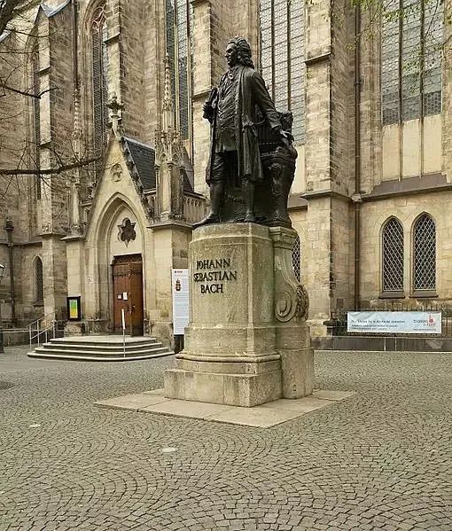 位于德国莱比锡圣托马斯教堂外的巴赫雕像△