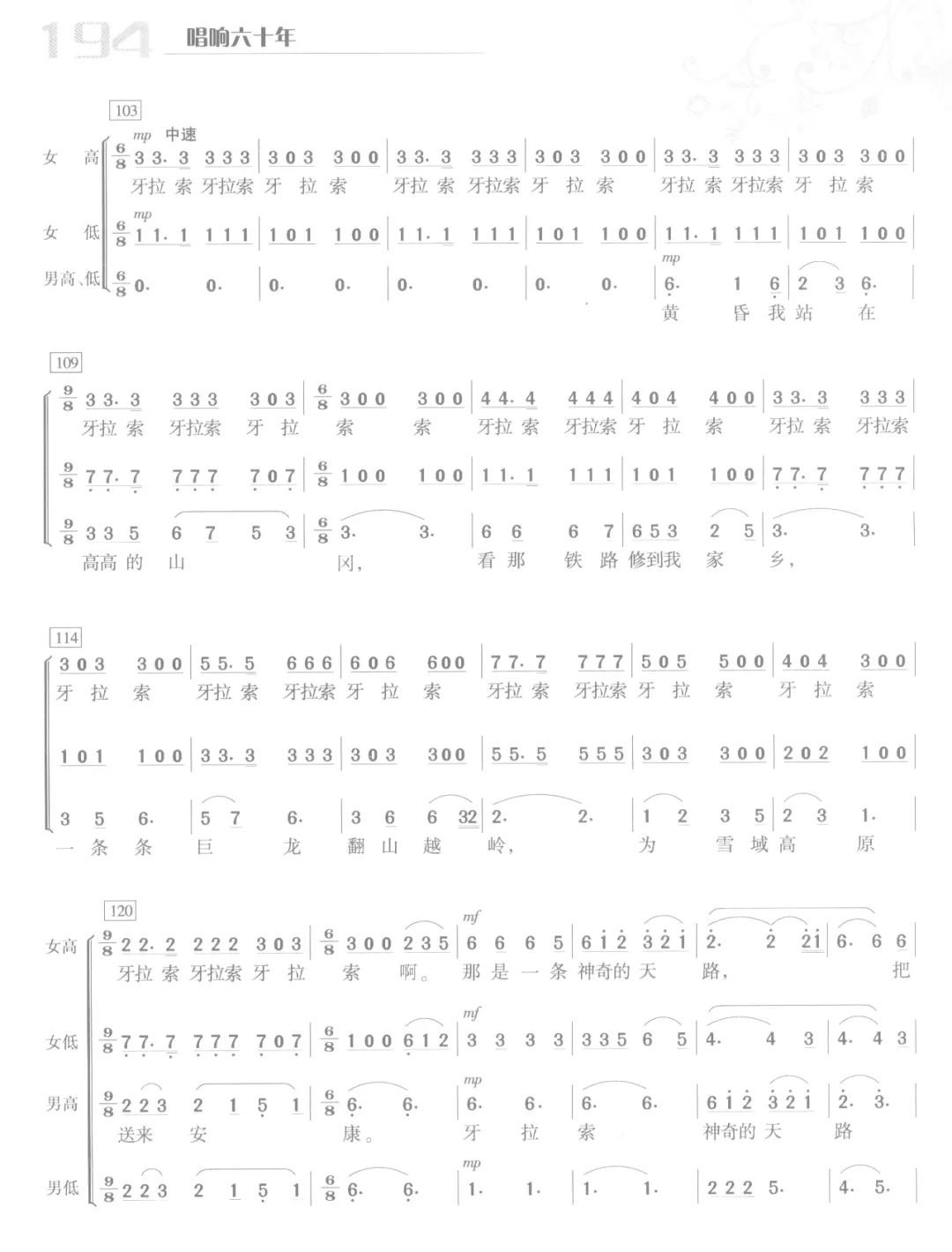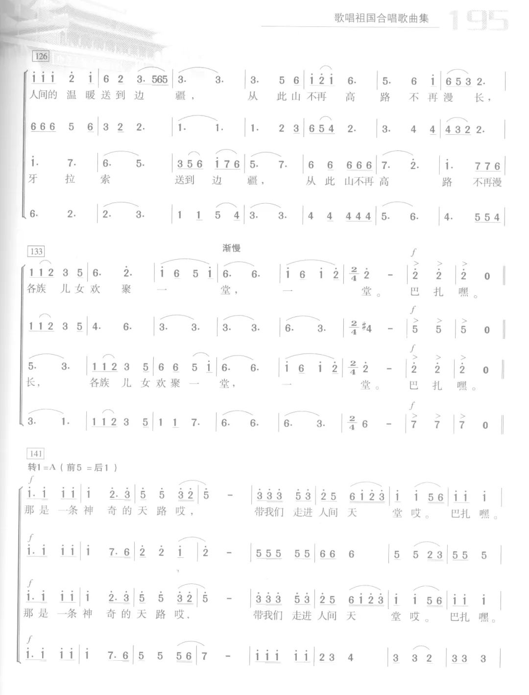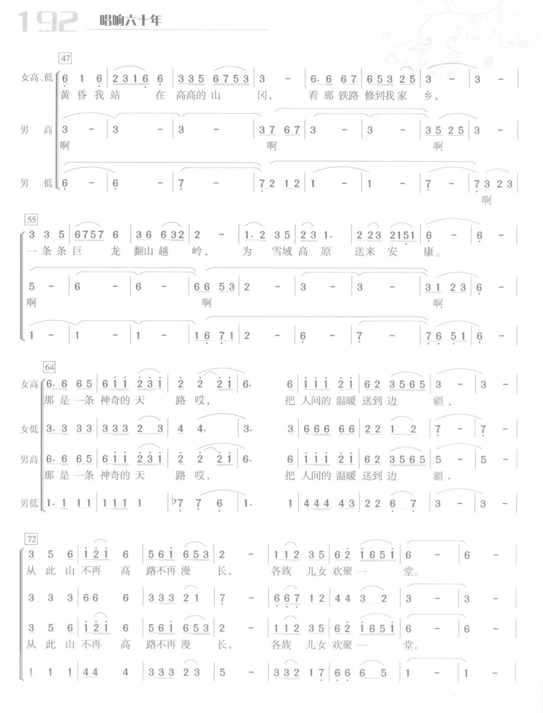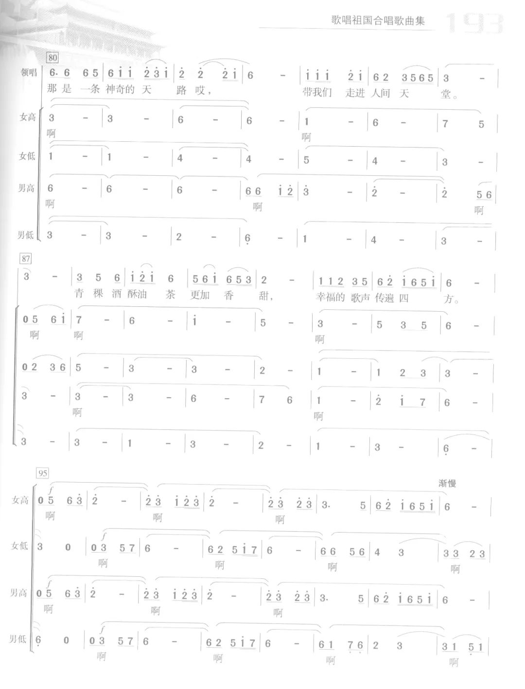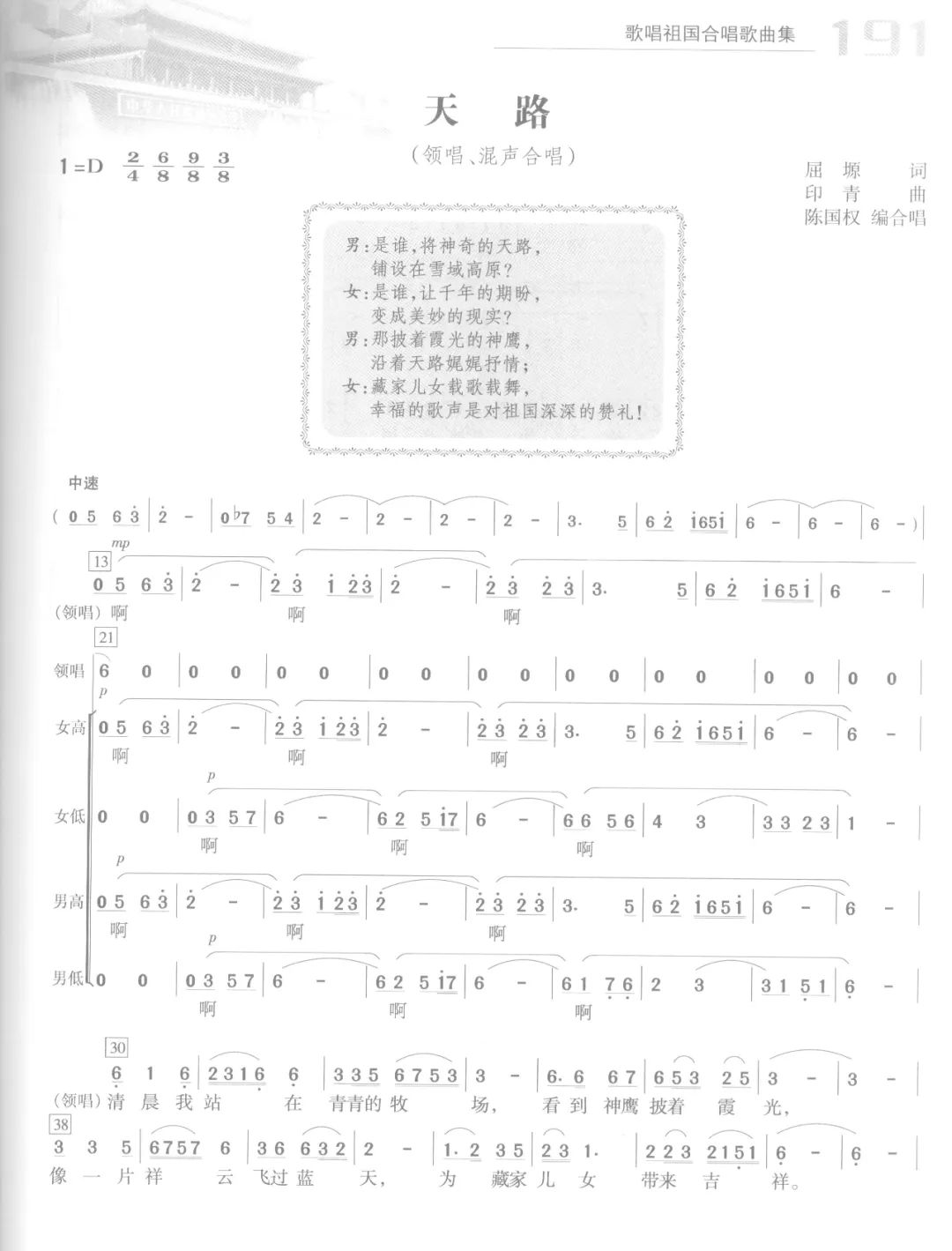 领唱、混声合唱《天路》高清简谱歌词是器乐学习网于2024年01月21日 12:58:38更新分享的合唱歌谱;资源收录于合唱歌谱栏目中;器乐学习网免费分享领唱、混声合唱《天路》简谱与五线谱歌谱图片,欢迎在线免费下载;器乐学习网无需注册会员,直接免费下载各类乐器学习资源及乐谱。