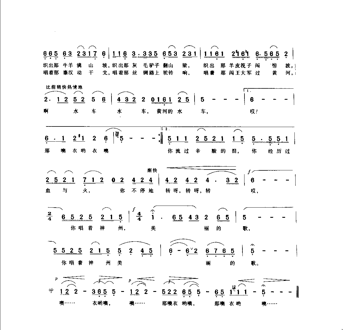 黄河水车 腾忠忱词 张军曲高清简谱歌词是器乐学习网于2025年01月06日 11:26:59更新分享的歌曲简谱;资源收录于歌曲简谱栏目中;器乐学习网免费分享黄河水车 腾忠忱词 张军曲简谱与五线谱歌谱图片,欢迎在线免费下载;器乐学习网无需注册会员,直接免费下载各类乐器学习资源及乐谱。