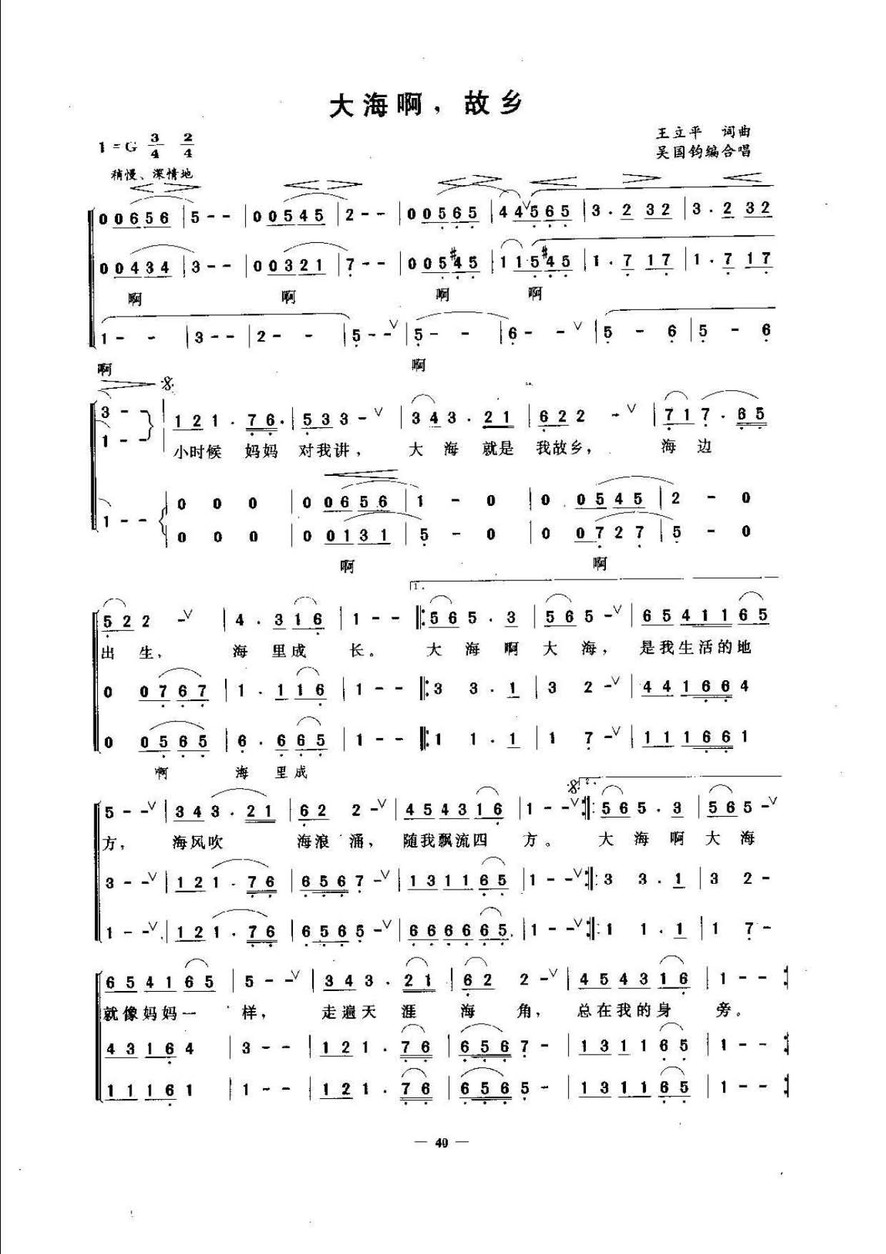 大海啊,故乡 王立平词曲 吴国钧编合唱