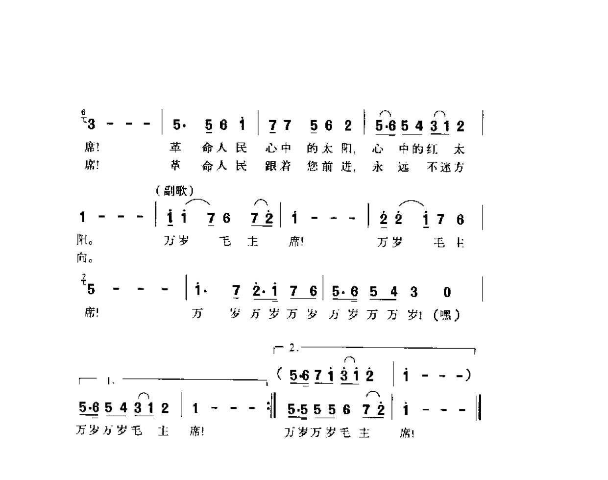 佚名 网络万岁毛主席 勤耕词曲高清简谱歌词是器乐学习网于2025年01月13日 16:20:20更新分享的歌曲简谱;资源收录于歌曲简谱栏目中;器乐学习网免费分享万岁毛主席 勤耕词曲简谱与五线谱歌谱图片,欢迎在线免费下载;器乐学习网无需注册会员,直接免费下载各类乐器学习资源及乐谱。