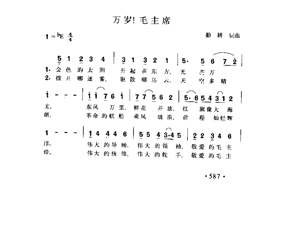 万岁毛主席 勤耕词曲高清简谱歌词是器乐学习网于2025年01月13日 16:20:20更新分享的歌曲简谱;资源收录于歌曲简谱栏目中;器乐学习网免费分享万岁毛主席 勤耕词曲简谱与五线谱歌谱图片,欢迎在线免费下载;器乐学习网无需注册会员,直接免费下载各类乐器学习资源及乐谱。