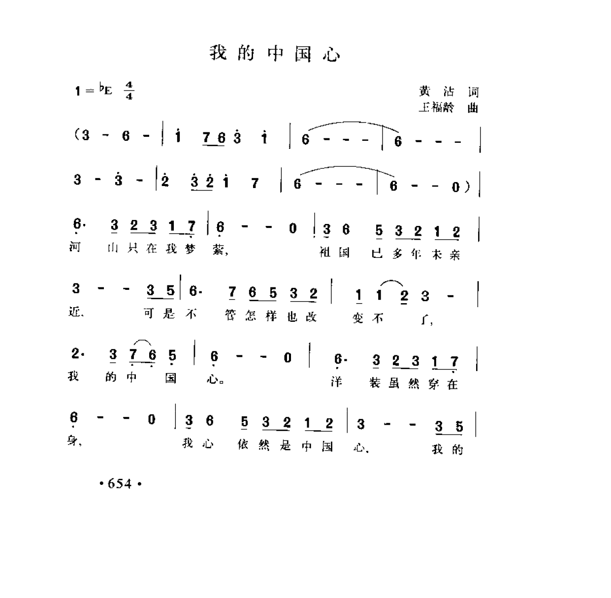 我的中国心 黄沾词 王福龄曲