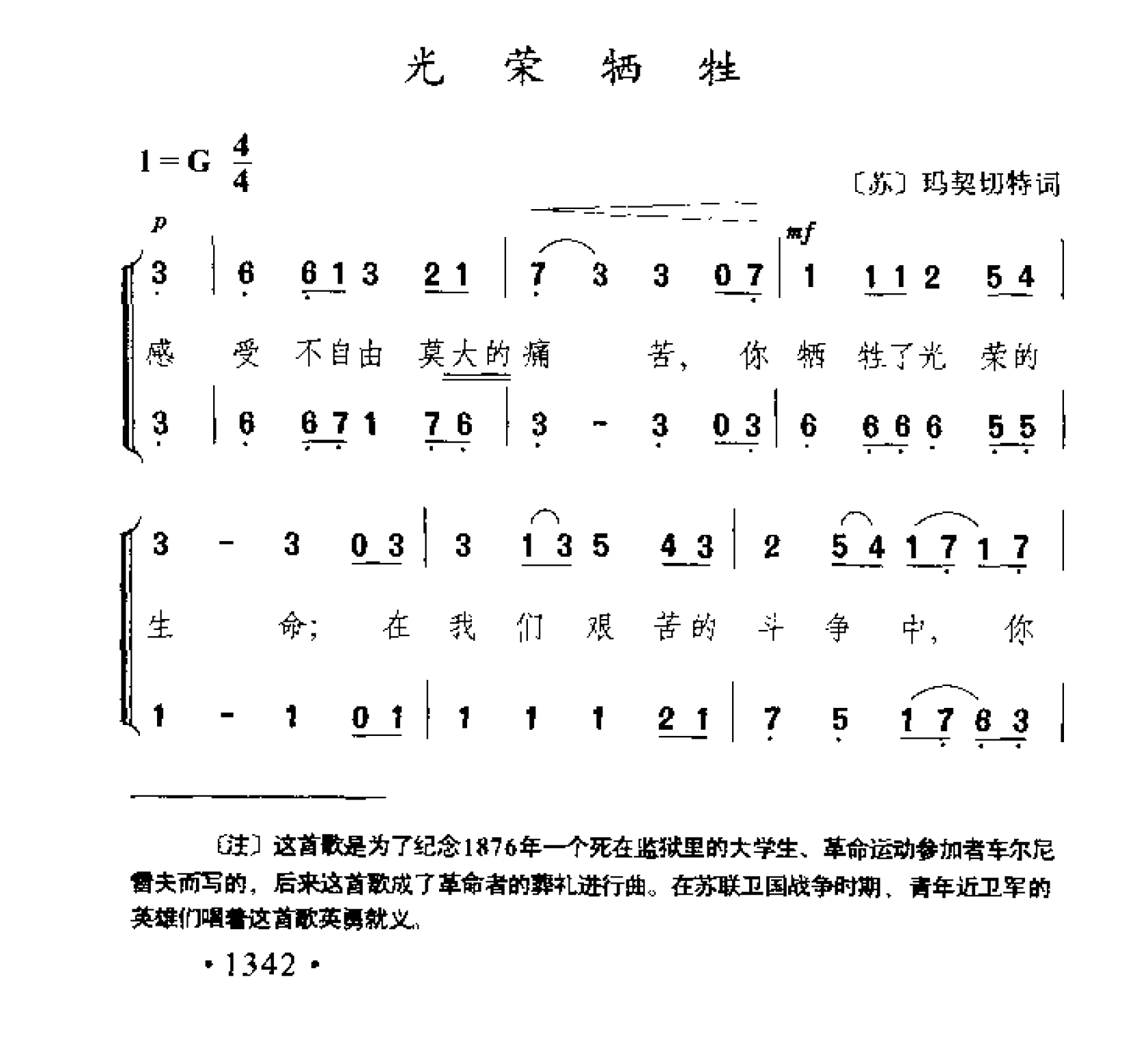 佚名 网络光荣牺牲 苏联歌曲高清简谱歌词是器乐学习网于2025年02月08日 14:43:07更新分享的外国歌谱;资源收录于外国歌谱栏目中;器乐学习网免费分享光荣牺牲 苏联歌曲简谱与五线谱歌谱图片,欢迎在线免费下载;器乐学习网无需注册会员,直接免费下载各类乐器学习资源及乐谱。