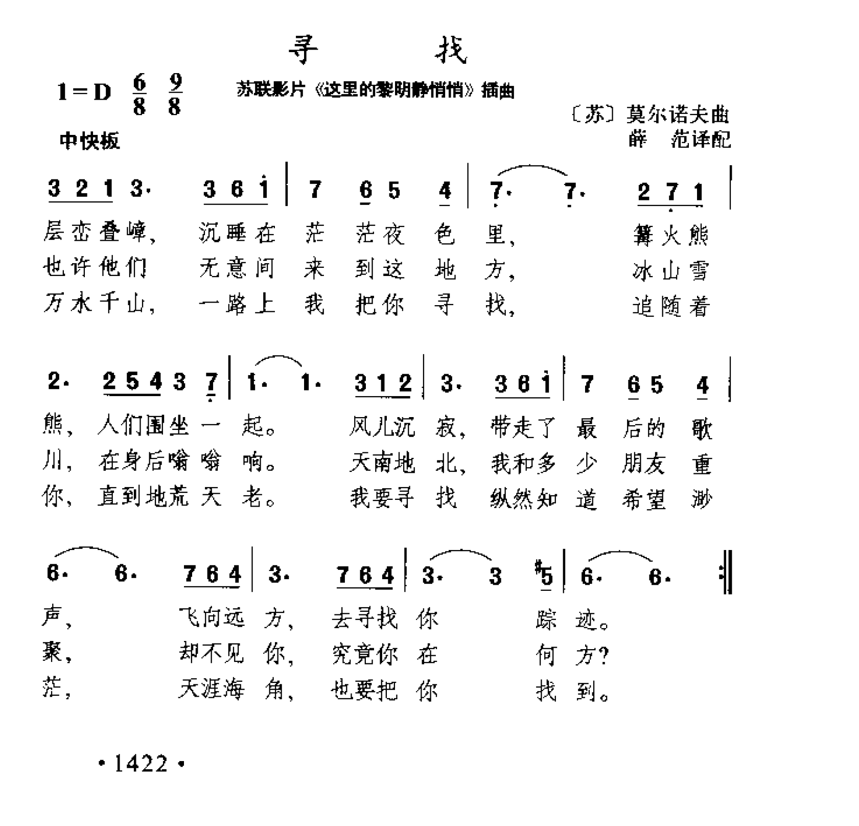 寻找(苏联影片《这里的黎明静悄悄》插曲)(苏)莫尔诺夫曲