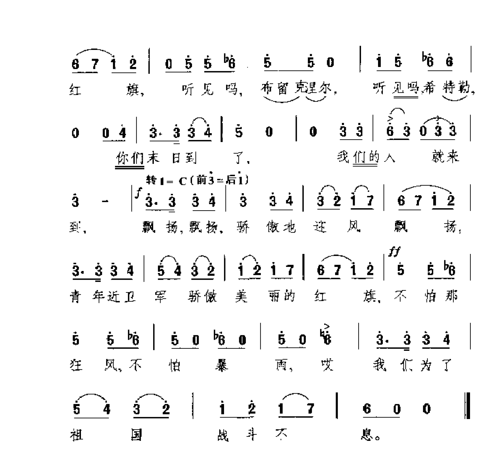 佚名 网络飘扬吧,红旗(选自歌剧《青年近卫军》)(苏)梅图斯曲高清简谱歌词是器乐学习网于2025年02月08日 20:29:31更新分享的歌曲简谱;资源收录于歌曲简谱栏目中;器乐学习网免费分享飘扬吧,红旗(选自歌剧《青年近卫军》)(苏)梅图斯曲简谱与五线谱歌谱图片,欢迎在线免费下载;器乐学习网无需注册会员,直接免费下载各类乐器学习资源及乐谱。