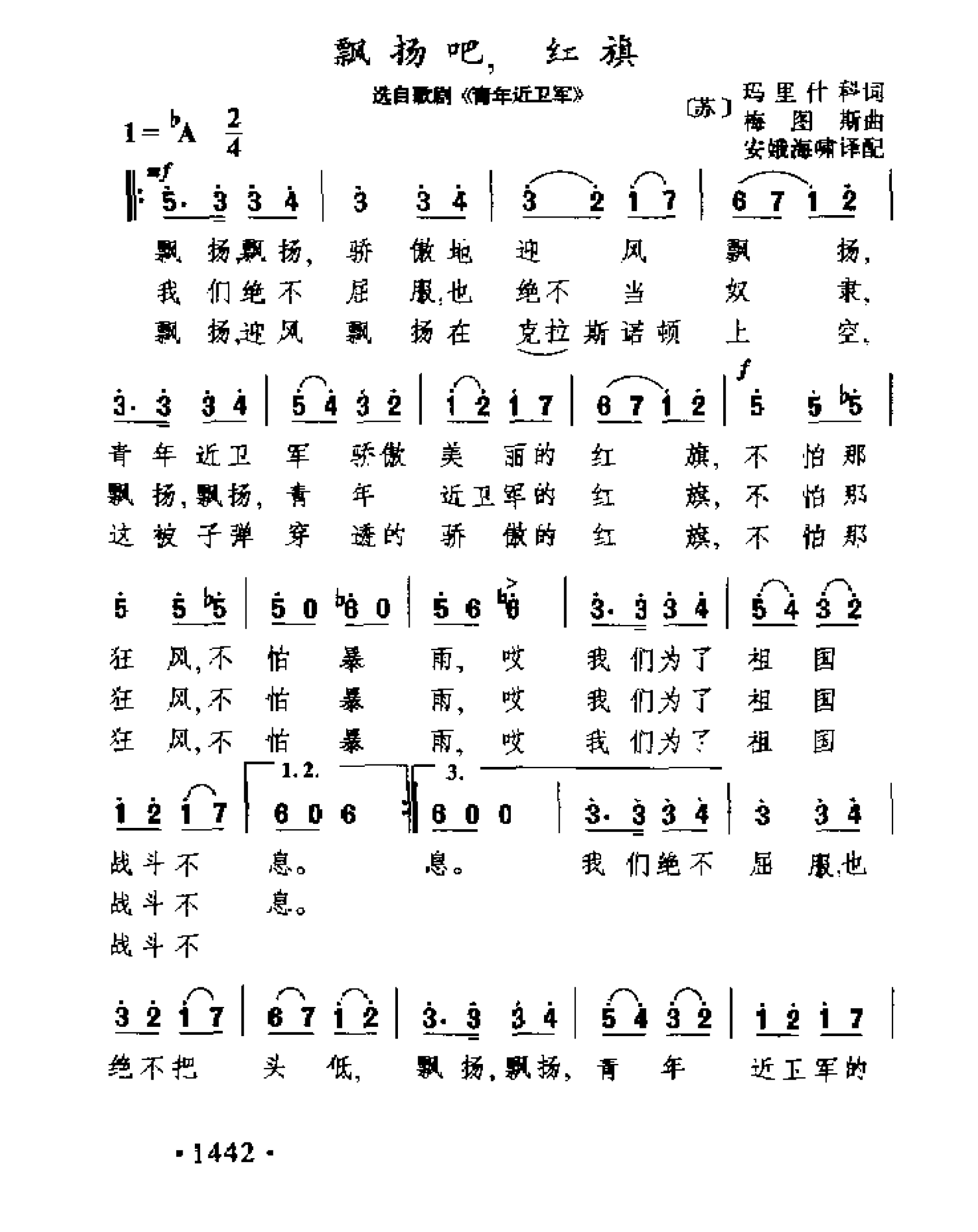 飘扬吧,红旗(选自歌剧《青年近卫军》)(苏)梅图斯曲高清简谱歌词是器乐学习网于2025年02月08日 20:29:31更新分享的歌曲简谱;资源收录于歌曲简谱栏目中;器乐学习网免费分享飘扬吧,红旗(选自歌剧《青年近卫军》)(苏)梅图斯曲简谱与五线谱歌谱图片,欢迎在线免费下载;器乐学习网无需注册会员,直接免费下载各类乐器学习资源及乐谱。