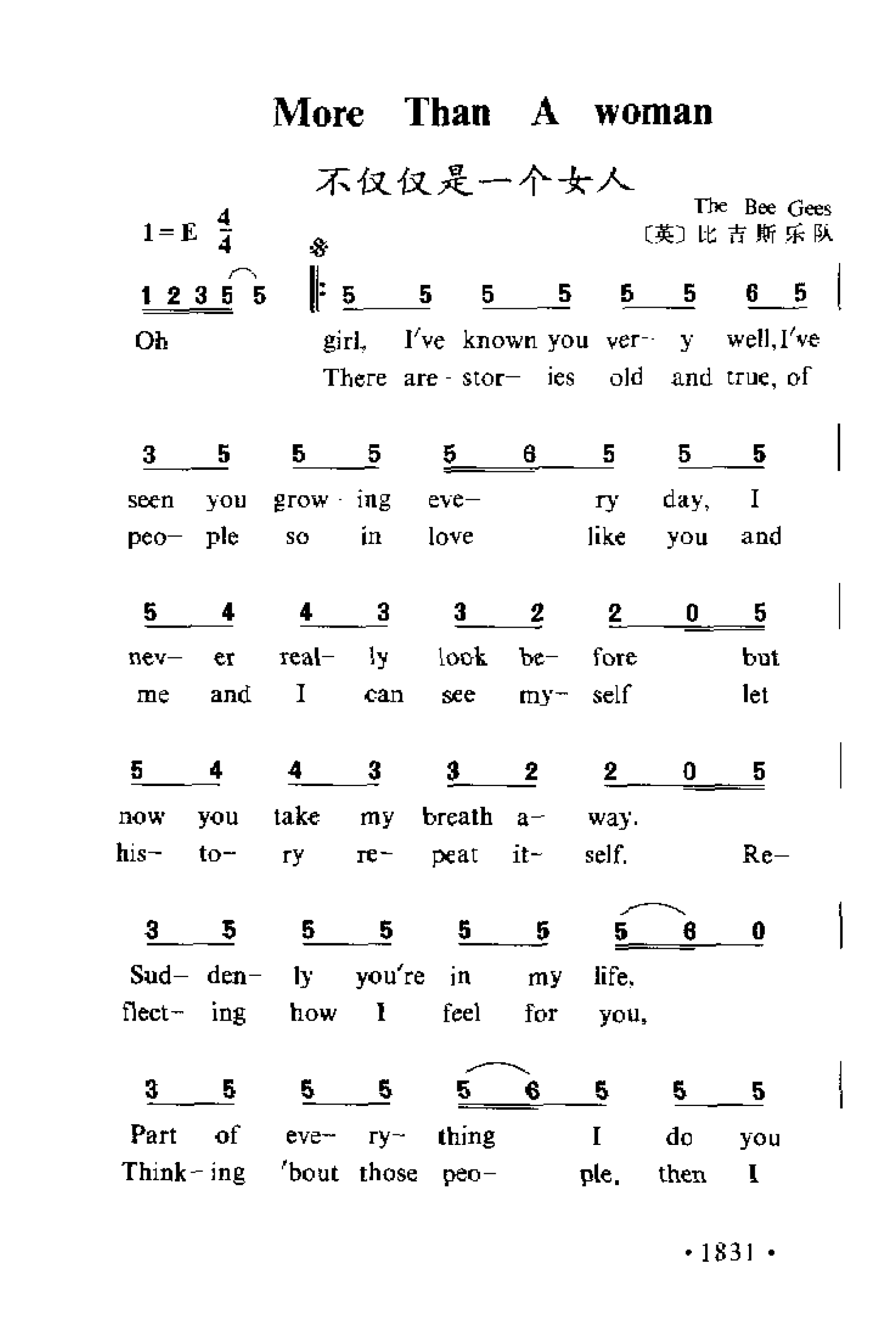 不仅仅是一个女人(英)比吉斯乐队高清简谱歌词是器乐学习网于2025年02月10日 15:58:59更新分享的歌曲简谱;资源收录于歌曲简谱栏目中;器乐学习网免费分享不仅仅是一个女人(英)比吉斯乐队简谱与五线谱歌谱图片,欢迎在线免费下载;器乐学习网无需注册会员,直接免费下载各类乐器学习资源及乐谱。