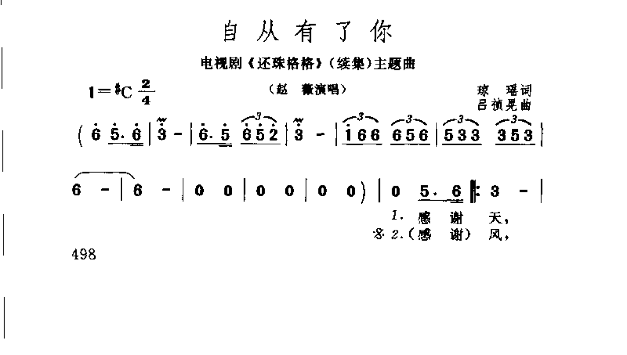 自从有了你 电视剧《还珠格格》(续集)主题曲·1999琼瑶词 吕祯幌曲(赵薇演唱)