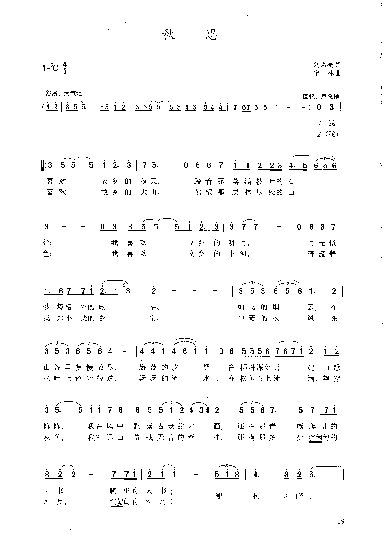 秋思 刘满衡词 宁林曲高清简谱歌词是器乐学习网于2025年02月17日 15:26:56更新分享的歌曲简谱;资源收录于歌曲简谱栏目中;器乐学习网免费分享秋思 刘满衡词 宁林曲简谱与五线谱歌谱图片,欢迎在线免费下载;器乐学习网无需注册会员,直接免费下载各类乐器学习资源及乐谱。