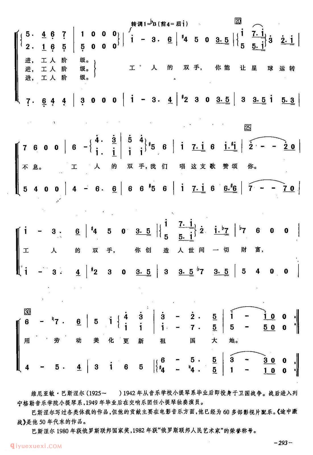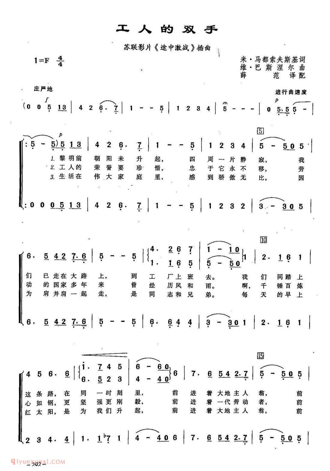 简谱《工人的双手/合唱/苏联影片/途中激战/插曲》俄罗斯