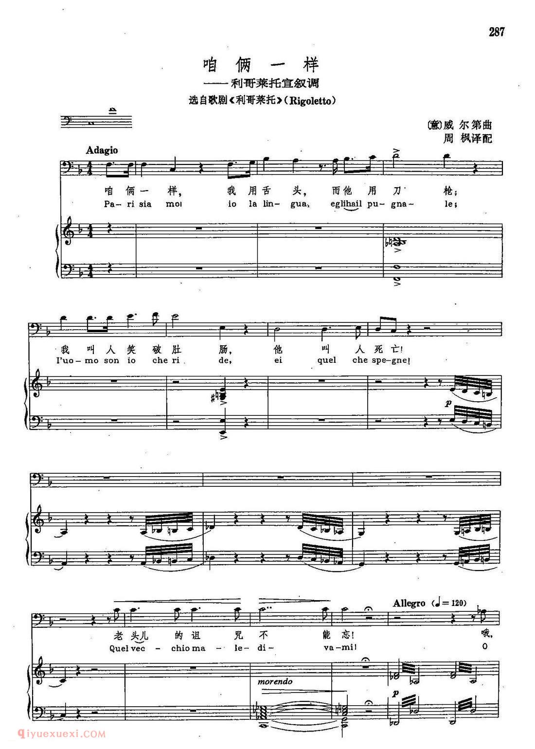 佚名 网络意大利 | 咱俩一样/选自歌剧利哥来托 | 适合声乐教学的五线谱高清简谱歌词是器乐学习网于2021年05月12日 16:34:27更新分享的外国歌谱;资源收录于外国歌谱栏目中;器乐学习网免费分享意大利 | 咱俩一样/选自歌剧利哥来托 | 适合声乐教学的五线谱简谱与五线谱歌谱图片,欢迎在线免费下载;器乐学习网无需注册会员,直接免费下载各类乐器学习资源及乐谱。