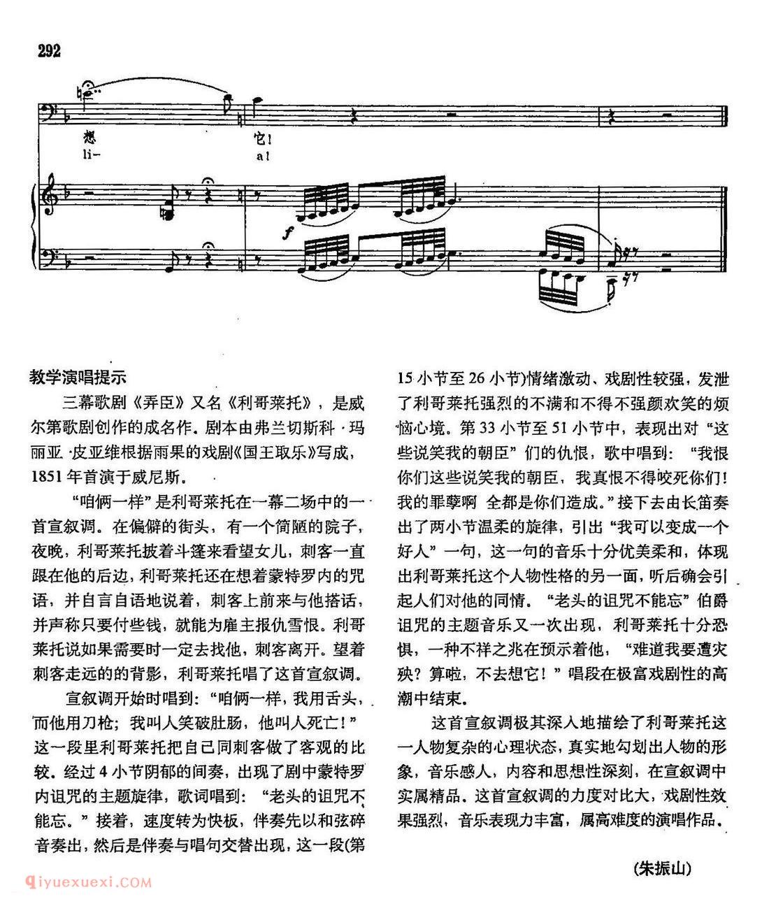 意大利 | 咱俩一样/选自歌剧利哥来托 | 适合声乐教学的五线谱
