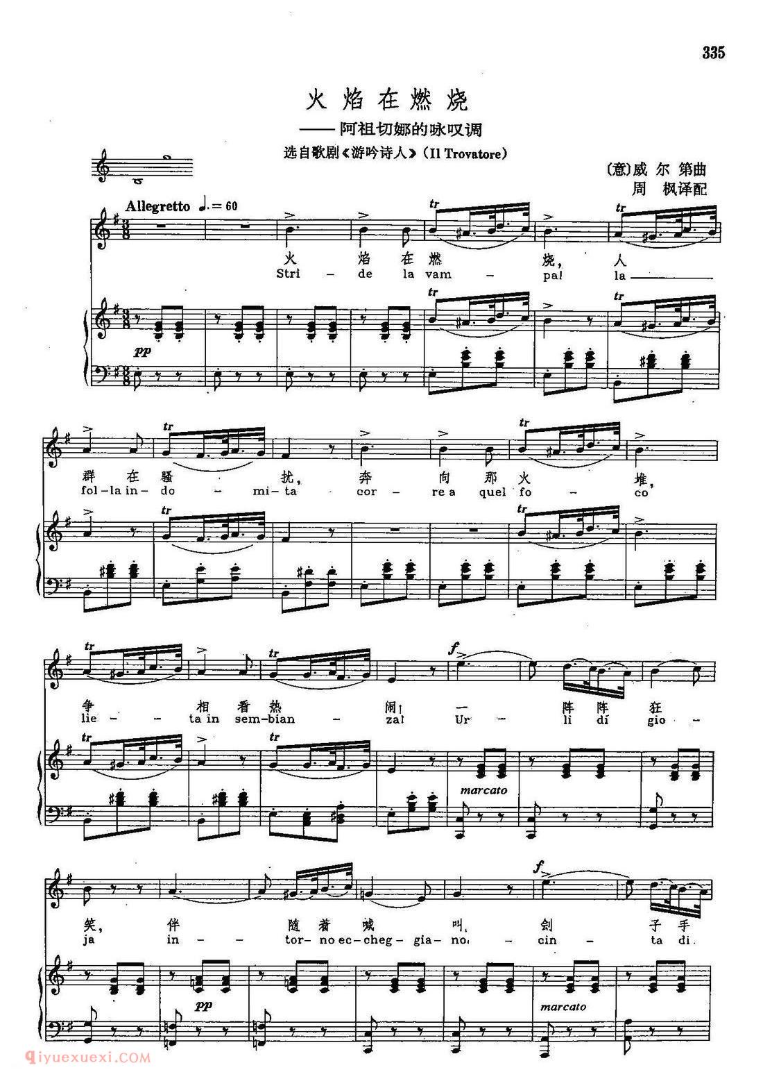 佚名 网络意大利 | 火焰在燃烧/选自歌剧游吟诗人 | 适合声乐教学的五线谱高清简谱歌词是器乐学习网于2021年05月12日 16:46:39更新分享的外国歌谱;资源收录于外国歌谱栏目中;器乐学习网免费分享意大利 | 火焰在燃烧/选自歌剧游吟诗人 | 适合声乐教学的五线谱简谱与五线谱歌谱图片,欢迎在线免费下载;器乐学习网无需注册会员,直接免费下载各类乐器学习资源及乐谱。