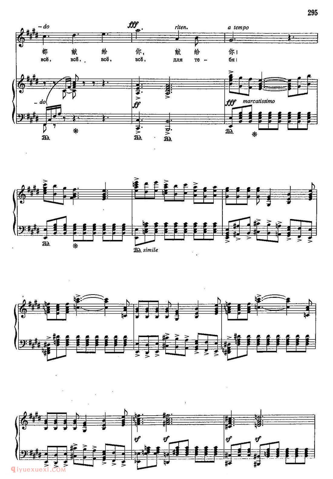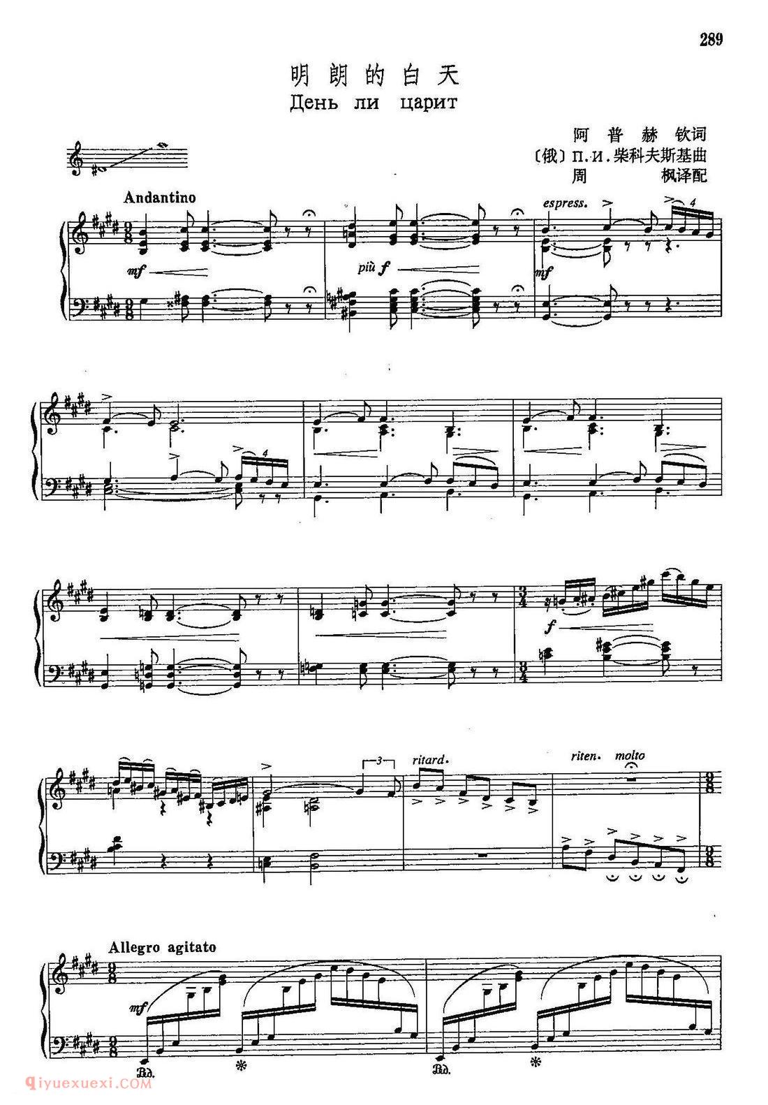 俄罗斯 | 明朗的白天 | 声乐教学乐曲五线谱