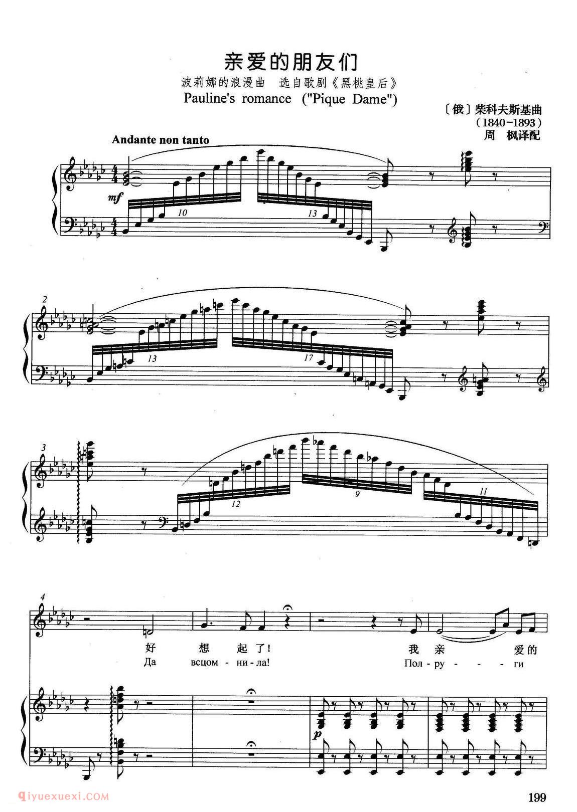 俄罗斯 | 亲爱的朋友们 选自歌剧黑桃皇后 | 五线谱