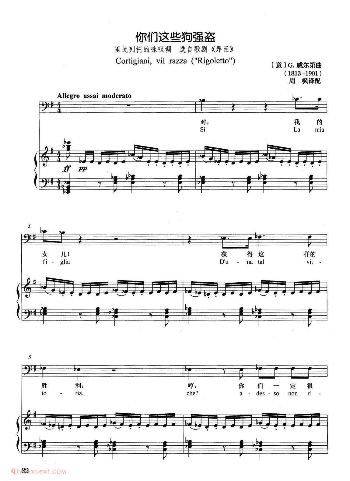 意大利| 你们这些狗强盗 选自歌剧弄臣 | 五线谱高清简谱歌词是器乐学习网于2021年05月31日 10:20:15更新分享的外国歌谱;资源收录于外国歌谱栏目中;器乐学习网免费分享意大利| 你们这些狗强盗 选自歌剧弄臣 | 五线谱简谱与五线谱歌谱图片,欢迎在线免费下载;器乐学习网无需注册会员,直接免费下载各类乐器学习资源及乐谱。