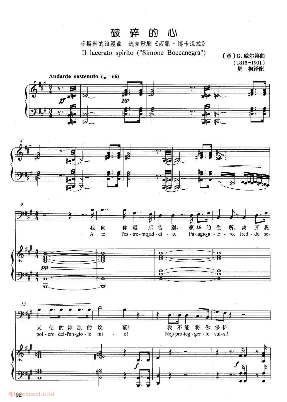 意大利| 破碎的心 选自歌剧西蒙·波卡涅拉 | 五线谱