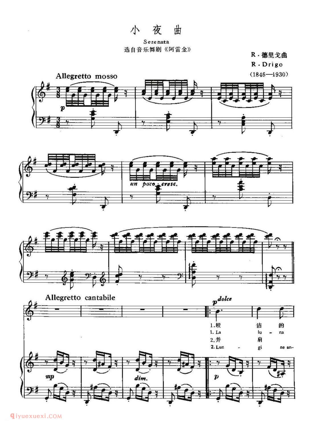 意大利 | 小夜曲 选自音乐舞剧阿雷金 | 五线谱