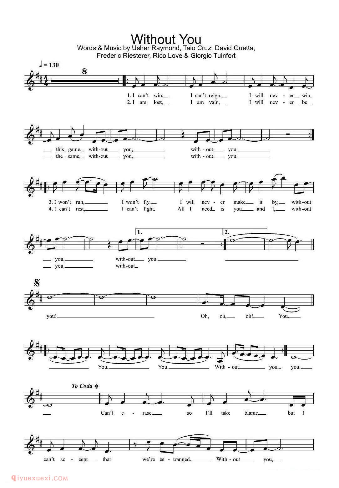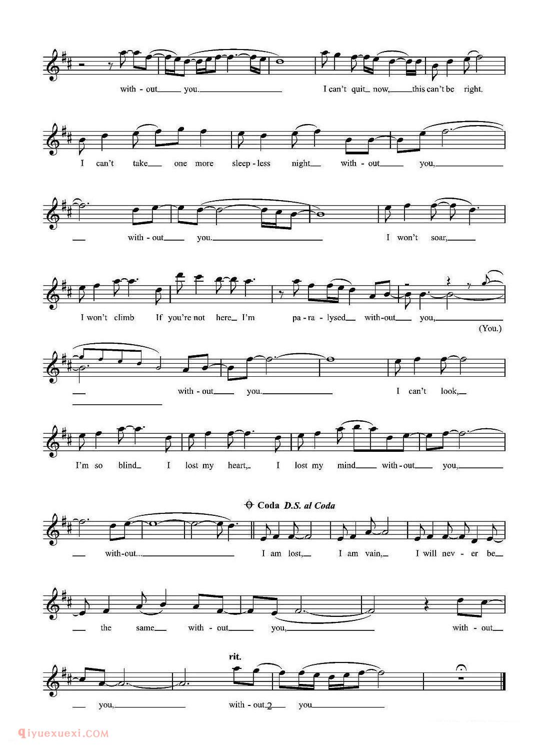 英国 | Without you | 五线谱高清简谱歌词是器乐学习网于2021年07月11日 22:52:37更新分享的外国歌谱;资源收录于外国歌谱栏目中;器乐学习网免费分享英国 | Without you | 五线谱简谱与五线谱歌谱图片,欢迎在线免费下载;器乐学习网无需注册会员,直接免费下载各类乐器学习资源及乐谱。