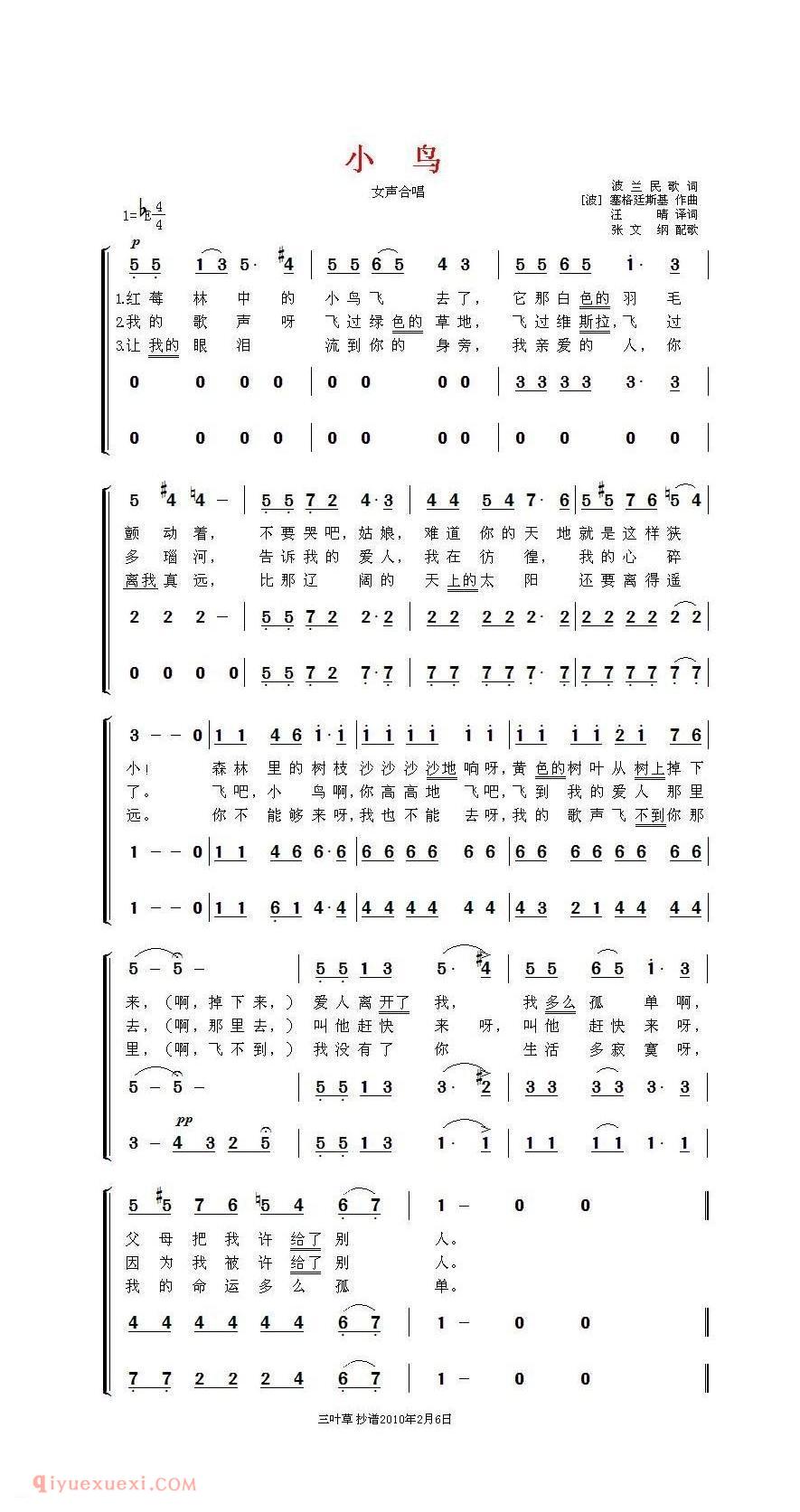 小鸟 | 波兰高清简谱歌词是器乐学习网于2021年07月17日 16:43:32更新分享的合唱歌谱;资源收录于合唱歌谱栏目中;器乐学习网免费分享小鸟 | 波兰简谱与五线谱歌谱图片,欢迎在线免费下载;器乐学习网无需注册会员,直接免费下载各类乐器学习资源及乐谱。